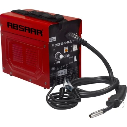 Das Absaar MIG Schweißgerät mit stufenlosem Drahtvorschub ermöglicht ein Schutzgasschweissen ohne zusätzliche Gasflasche. Der Fülldraht enthält dabei das notwendige Schutzgas. Die 90 A-Maximalleistung sind ausreichend für die gängigsten Anwendungen und Blechstärken von 0,6 mm – 0,9 mm. Des Weiteren ist die Stromstärke einstellbar und die Sicherheit durch einen Thermoüberlastschutz mit Kontrollleuchte gewährleistet.