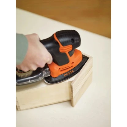Der Black+Decker Mouse Dreieckschleifer KA 2000 eignet sich ideal zum Abschleifen von Farbe und Lack, sowie zum Reinigen von Glas. Das kompakte und schlanke Design bietet mehr Kontrolle beim Schleifen, selbst an schwer zugänglichen Stellen. Durch seine dreieckige Schleifplatte ist der Black+Decker Mouse Dreiecksschleifer KA 2000 ideal für Arbeiten in Ecken und an Kanten. Die Klettfix Schleifplatte macht den Zubehörwechsel schnell und einfach. Großflächige gummierte Softgriffe sorgen für mehr Bedienkomfort und eine bessere Geräteführung.