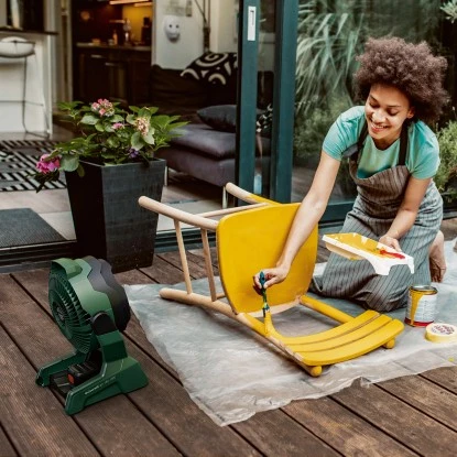 Der brandneue Akku-Ventilator UniversalFan 18V-1000 von BOSCH wurde speziell für die Bedürfnisse von Heimwerkern entwickelt. Er ist leicht, kompakt und robust, und die innovative Bosch JetBreeze Airflow Technology erzeugt einen kraftvollen, konzentrierten Luftstrom, sorgt für eine hervorragende Laufzeit und ein angenehmes, leises Betriebsgeräusch. Die Ventilatordrehzahl ist stufenlos verstellbar und bleibt dank Constant Power während der gesamten Akkulaufzeit auf konstantem Niveau.