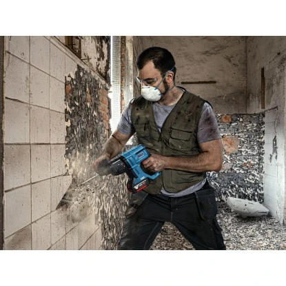 Der Bosch Professional Akku-Bohrhammer GBH 18 V-20 ist ein kraftvolles Elektrowerkzeug zum Bohren, Meißeln und Hammerbohren. Er leistet Ihnen zuverlässige Dienste bei Anwendungen im Heim- und Handwerkerbereich. So können Sie beispielsweise Durchbrüche für Fenster und Kabel erzeugen oder Bohrungen in Beton, Holz und Metall vornehmen.
