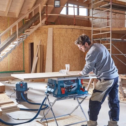 Die Bosch Professional Tischkreissäge überzeugt als leistungsstarke mobile Tischkreissäge mit der besten Schnittkapazität ihrer Klasse sowie viel Sicherheit und Komfort. Im Lieferumfang ist neben der Tischkreissäge ein Optiline-Wood Hartmetall-Sägeblatt enthalten.