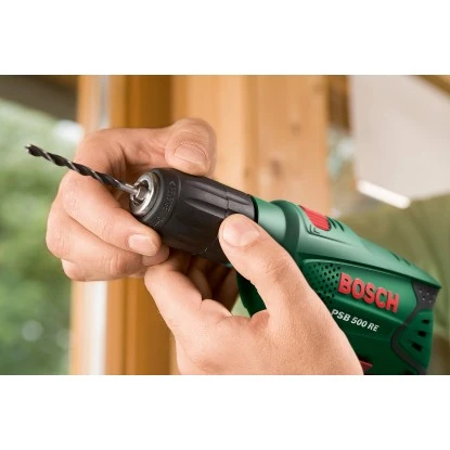 Die Schlagbohrmaschine PSB 500 RE Compact überzeugt durch eine kompakte Bauweise, geringes Gewicht und hervorragende Handlichkeit für optimalen Benutzerkomfort. Zudem werden Arbeiten wie Schrauben, Bohren und auch Schlagbohren mühelos erledigt. Der Funktionsschalter sorgt dabei für materialgerechtes Arbeiten. Mit dem leistungsstarken 500 W Motor und einem 10 mm Bohr-Ø in Beton gehen sogar schwere Arbeiten leicht von der Hand. Die Drehzahl kann je nach Material über den Schalterdrücker angepasst werden, was ein fein dosiertes Anbohren glatter Flächen ermöglicht. Zusätzlichen Komfort bietet der integrierter Schalter für Dauerlauf und das zweihülsige Schnellspann-Bohrfutter für den schnellen und einfachen Wechsel des Einsatzwerkzeuges.