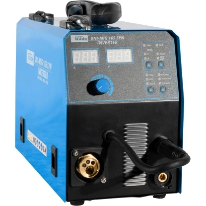 Das Güde Universalschweißgerät Uni-Mig 165 SYN ist ein vielseitiges Inverter-Schweißgerät, das zu den Universalgeräten der Güde-Produktlinie gehört. Mit Diem Gerät sind praktisch alle 4 Schweißverfahren möglich: MIG-MAG, MMA (Elektrodenschweißen), Flux (Fülldrahtschweißen) und optional auch WIG-Schweißen.