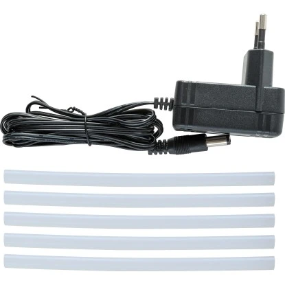 Damit Sie das Heißklebegerät komfortabel bedienen können, ist ein aufklappbarer Ständer integriert, der Ihnen ein sicheres Abstellen ermöglicht. Ein Zwei-Komponenten-Griff mit Softgrip sorgt für eine einfache Handhabung. Dazu trägt ebenfalls der lange, ergonomisch geformte Pistolenhebel bei. Je nach Nutzung ist der Akku über das zugehörige Netzteil innerhalb von zwei bis drei Stunden wieder vollständig aufgeladen.