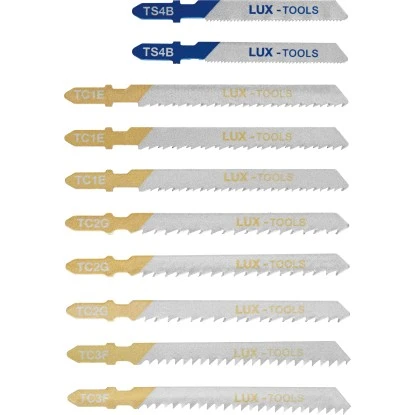 Mit dem LUX-TOOLS Stichsägeblatt-Set sind Sie für alle Projekte optimal ausgestattet. Das Set umfasst zehn Stichsägeblätter, die für die Materialien Holz, Kunststoff und Metall zum Einsatz kommen können: