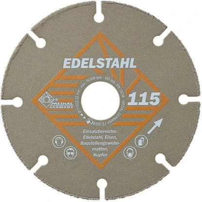 Die Medial Diamant-Trennscheibe Steel-X trennt Eisen, Edelstahl, Baustellengewebematten und Kupfer. Deutlich reduzierter Funkenflug im Vergleich zu einer handelsüblichen Gewebetrennscheibe.