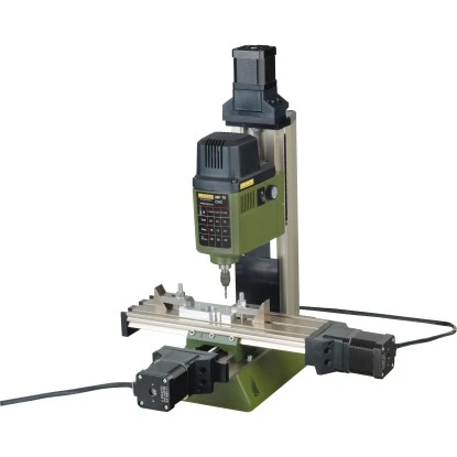 In allen Achsen besitzt die Fräse spielfreie, nachjustierbare Schwalbenschwanzführungen. Das Auslegergehäuse ist aus Alu-Druckguss, mit einem balanciertem DC-Spezialmotor gefertigt. Des Weiteren besitzt sie eine stufenlose Drehzahlregelung (Vollwellenelektronik), eine Werkzeugaufnahme durch 3-fach geschlitzte Micromot-Stahlspannzangen (je 1 Stück 1 – 1,5 – 2 – 2,4 – 3 und 3,2 mm) sowie einen Tisch mit drei durchgehenden T-Nuten (Micromot-Norm 12 mm x 6 mm x 5 mm).
