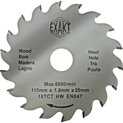 Das Sägeblatt 18TCT ist zum Sägen von Holz, Laminat, Spanplatten und Verbundstoffen geeignet.