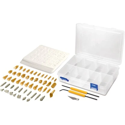 Der Worx 79 tlg. Zubehörsatz für den Lötkolben WX744.9/WA7218 beinhaltet alles, was man für die Brandmalerei benötigt.